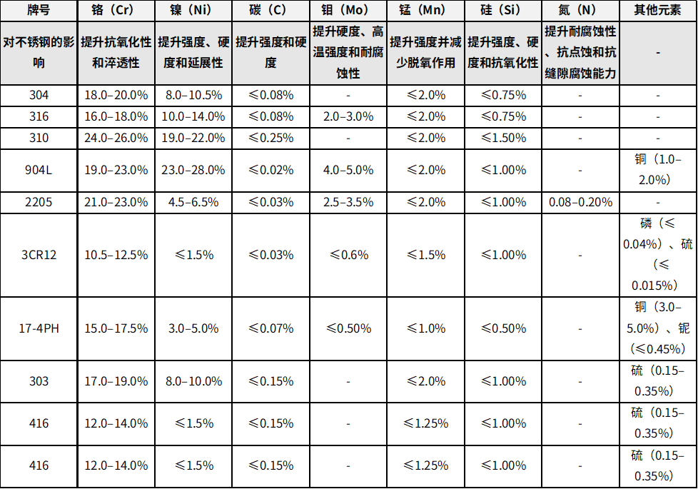 不銹鋼化學成分對其性能起著決定性作用,影響產品的使用表現、成本及使用壽命。了解關鍵影響因素并核實準確的化學成分,能幫助你為特定應用場景選擇更優方案。