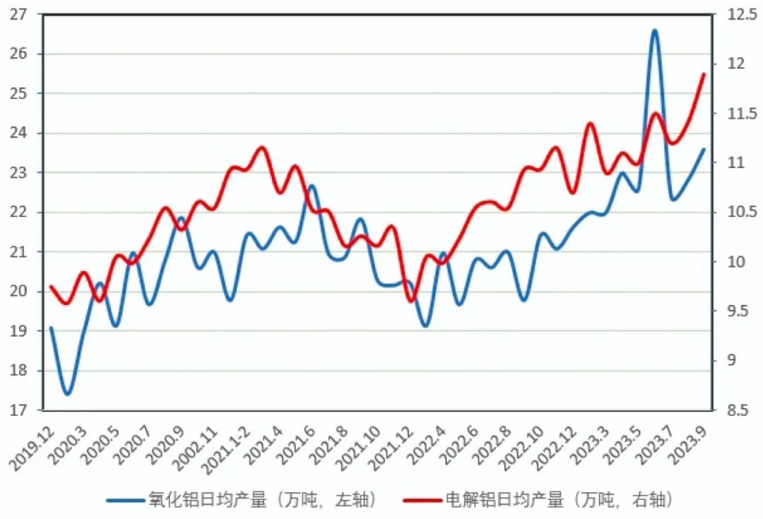 圖5 鋁冶煉產品月度日均產量