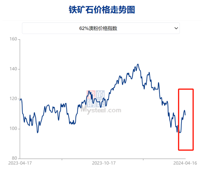 自清明節(jié)后,鐵礦石價(jià)格表現(xiàn)強(qiáng)勁。截止4月16日,Mysteel鐵礦石62%澳粉指數(shù)為109.25美元/干噸,雖然下跌3.1美元/干噸,但仍較節(jié)前最后一個(gè)工作日上漲9.9美元/干噸,漲幅為9.96%。市場(chǎng)情緒明顯好轉(zhuǎn),鐵礦石價(jià)格反彈,漲幅超大家預(yù)期,鐵礦石的春天是否到來(lái)了?