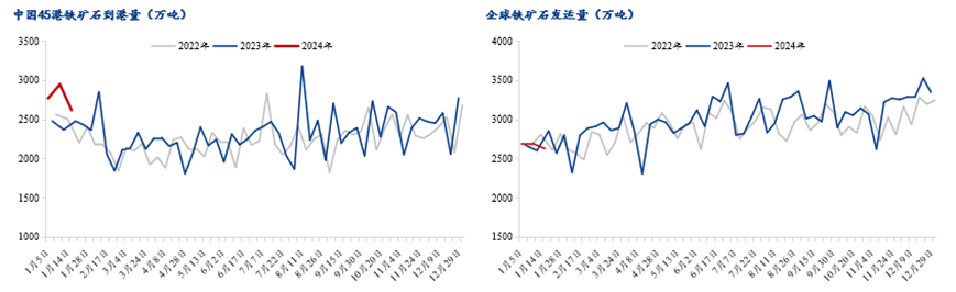 根據(jù)Mysteel全球鐵礦石發(fā)運(yùn)量數(shù)據(jù)顯示,近期由于臺(tái)風(fēng)影響,部分礦山港口檢修,最新周度全球鐵礦發(fā)運(yùn)總量大幅回落。上周(4.8-4.12)全球發(fā)運(yùn)量周值為3245.3萬(wàn)噸,周環(huán)比減少142.5萬(wàn)噸。但今年累計(jì)發(fā)運(yùn)情況看,全球鐵礦石發(fā)運(yùn)累計(jì)同比增量為1512.5萬(wàn)噸,其中巴西累計(jì)同比增量為1254.8萬(wàn)噸,非主流累計(jì)同比增量為1284.5萬(wàn)噸,澳洲則表現(xiàn)為累計(jì)同比減少1026.8萬(wàn)噸。受天氣因素影響,預(yù)計(jì)近幾周全球鐵礦石發(fā)運(yùn)量有所下降,待澳洲颶風(fēng)擾動(dòng)暫告一段落后,預(yù)計(jì)發(fā)運(yùn)水平還會(huì)有顯著增加。到港量與全球發(fā)貨量數(shù)據(jù)相似,根據(jù)Mysteel45港鐵礦石到港量數(shù)據(jù)顯示,上周(4.8-4.12)值為2437萬(wàn)噸,周環(huán)比減少4萬(wàn)噸。今年以來(lái),45港鐵礦石到港量累計(jì)同比增加1994萬(wàn)噸,其中澳洲累計(jì)同比減少1120萬(wàn)噸,巴西累計(jì)同比增加1836萬(wàn)噸,非主流累計(jì)同比增加1278萬(wàn)噸。