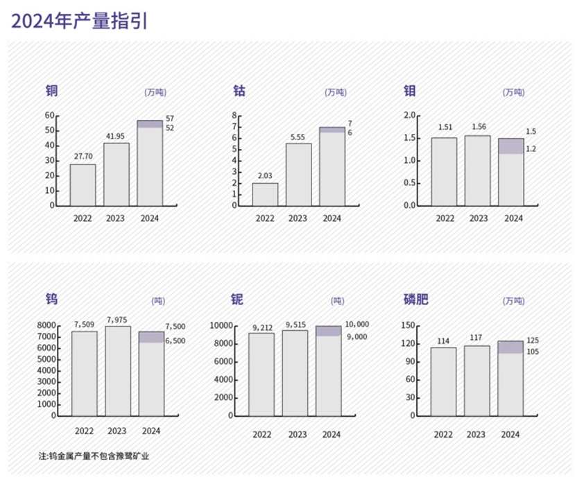 產(chǎn)量方面,隨著KFM項目和TFM項目均如期投產(chǎn),洛陽鉬業(yè)銅、鈷產(chǎn)品進入“收獲期”。