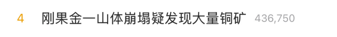 近日,有多家媒體報道,剛果(金)加丹加省一座山體崩塌,疑似發現大量銅礦,簡直是老天爺賞飯吃。該消息也登上了當日微博熱搜。