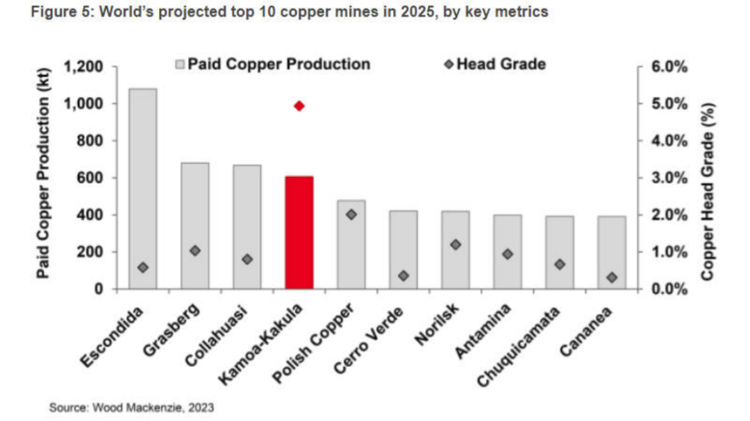 紫金礦業的卡莫阿 -卡庫拉銅礦以及科盧韋齊銅(鈷)礦,均位于剛果(金)的盧阿拉巴省,2024年卡莫阿-卡庫拉的銅精礦年產量月42.5-45萬噸,當礦山三期擴建完成后,未來10年平均產量將提升至約62萬噸/年,使卡莫阿銅礦成為全球第4大銅礦山、非洲大陸最大銅礦。